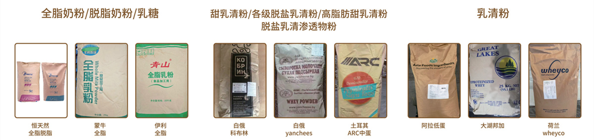 进口乳清粉、奶粉等